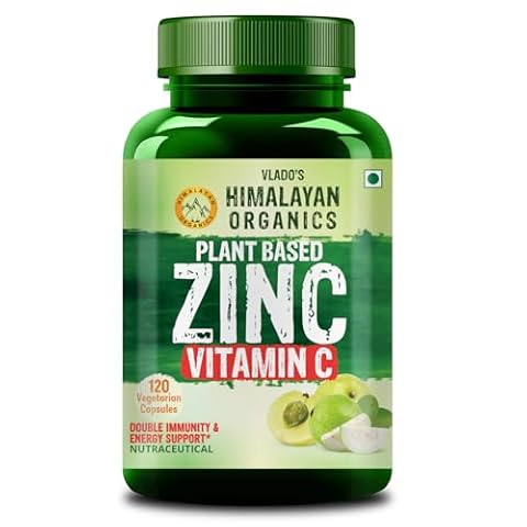Himalayan Organics Plant Based Vitamin C (120 Veg Capsules) with ZINC from Green Amla, Okra and Asparagus – for Immunity & Glowing Skin
