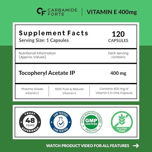 Carbamide Forte 400 mg Vitamin E Capsules for Face and Hair | 100% Natural Vitamin E Supplement with Vitamin E Oil | Paraben Free – 120 Capsules