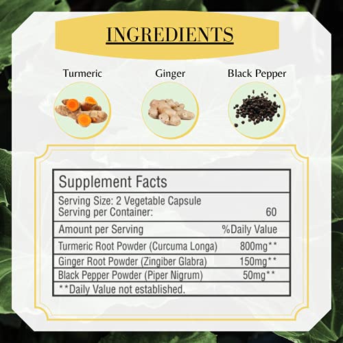 ✔ Natural Ingredients: Each capsule contains 1000mg of premium turmeric (Curcuma Longa) along with ginger and black pepper for added benefits.