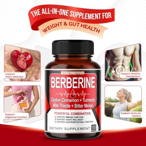 $19.90(as of 20/11/2025 04:48 PST- Details)Berberine Supplement – Enhanced with Ceylon Cinnamon, Turmeric, Milk Thistle, Bitter Melon for Digestion, Immunity & Weight Managament (150 Count (Pack of 1))